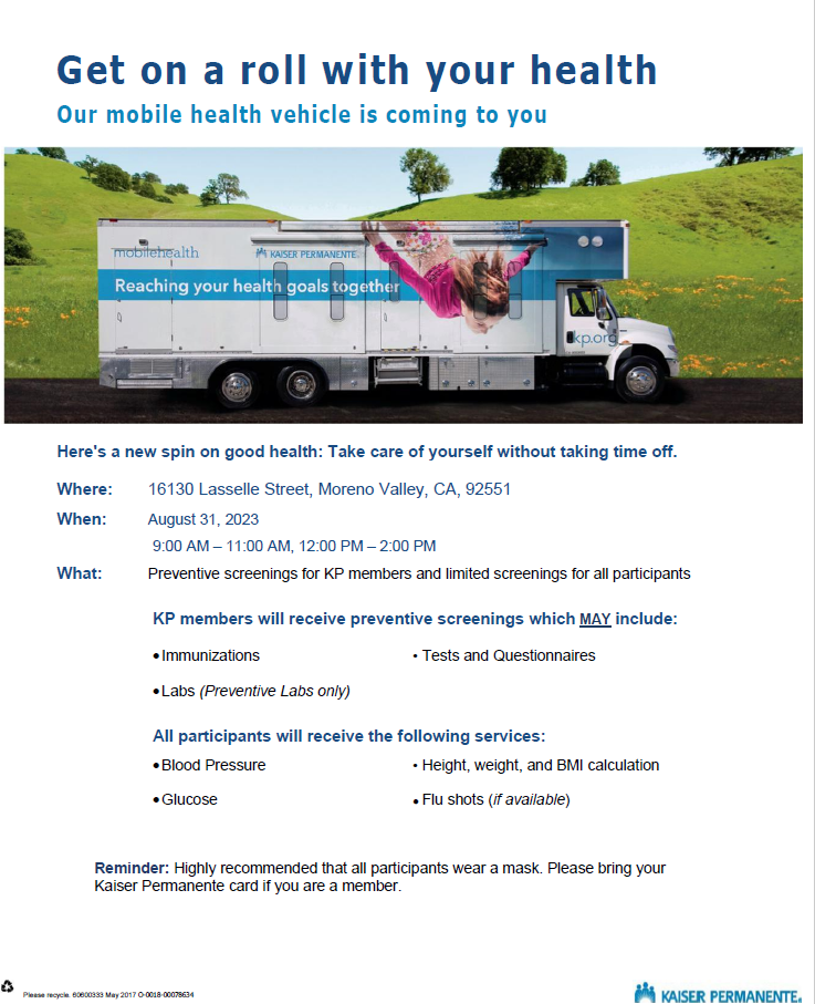 - August 2, 2023 - Kaiser Permanente Mobile Health at MVC - August 31 [PDF]