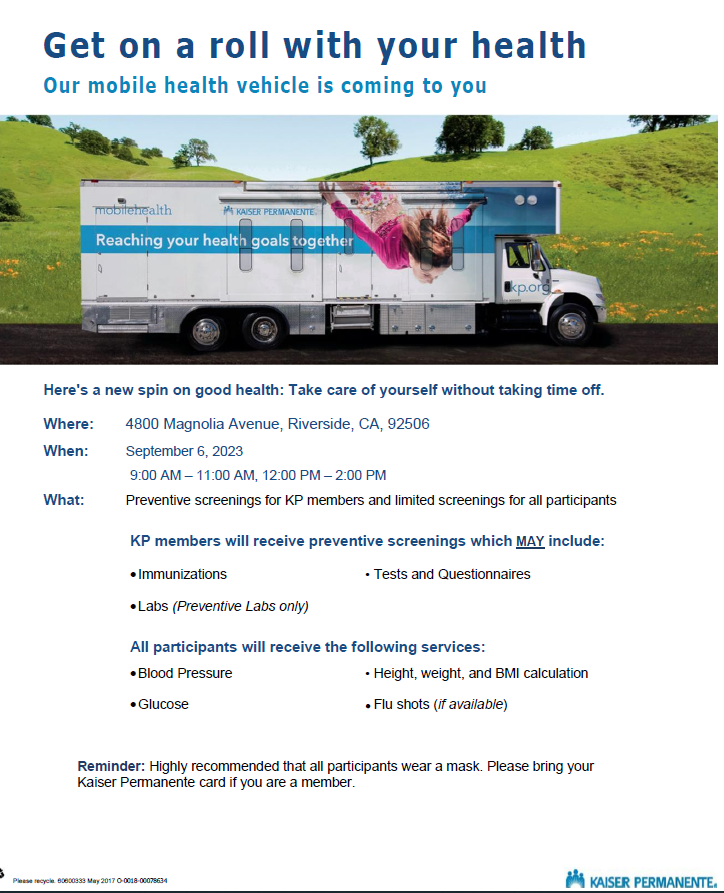 - August 2, 2023 - Kaiser Permanente Mobile Health at RCC - September 6 [PDF]