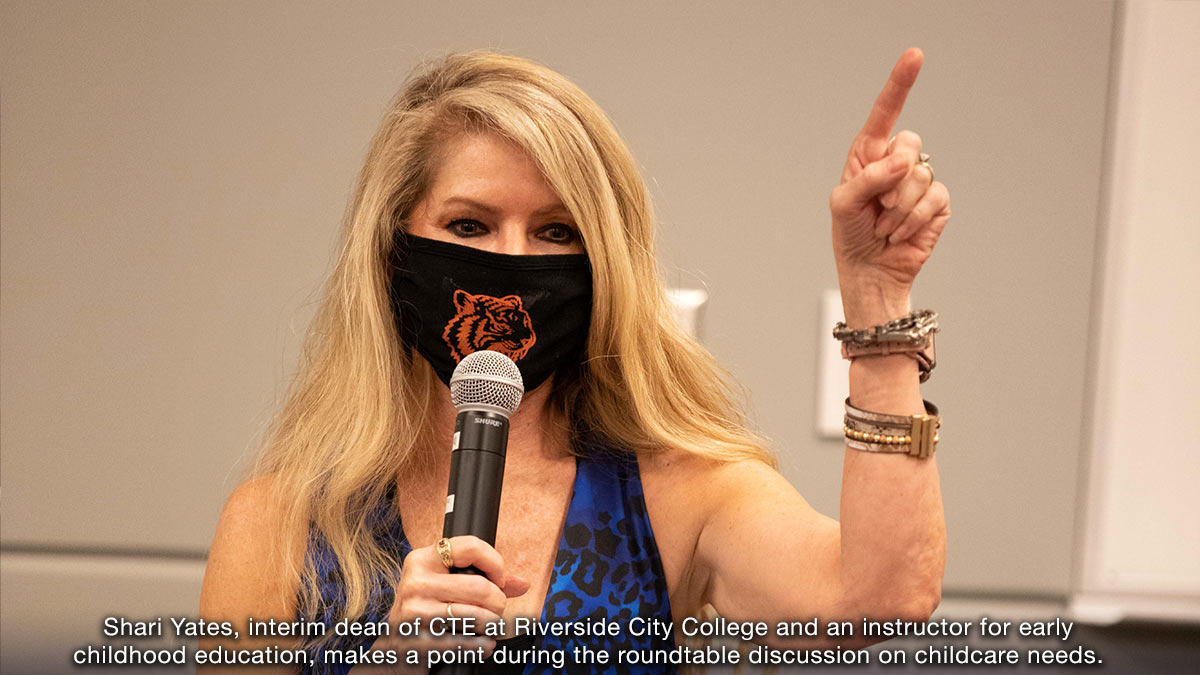 Shari Yates, interim dean of CTE at RCC and an instructor for early childhood education, addressed how low wages impact the childcare workforce, which is primarily women. Currently, preschool teachers in California earn an average hourly wage of $16.64, however, introductory salaries can begin as low as $11.96. To earn a living wage in Riverside County, research suggests that an employee would need to earn at least $21.76 per hour.